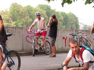 Так, отправились и финишировали велосипедисты в парке имени А. Кузьменко (парк Горького). Под музыкальное сопровождение композиций в исполнении погибшего музыканта велосипедисты преодолели следующий маршрут по городу: